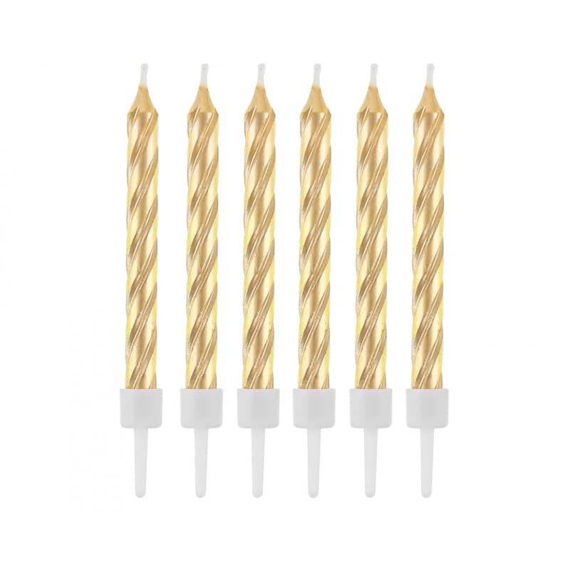 Bougies avec support, torsadée dorée, 8 cm, 12 pcs. Hauteur : 8cm Couleur: Or Nombre de bougies dans le colis : 12 Collection : Beauté & Charme